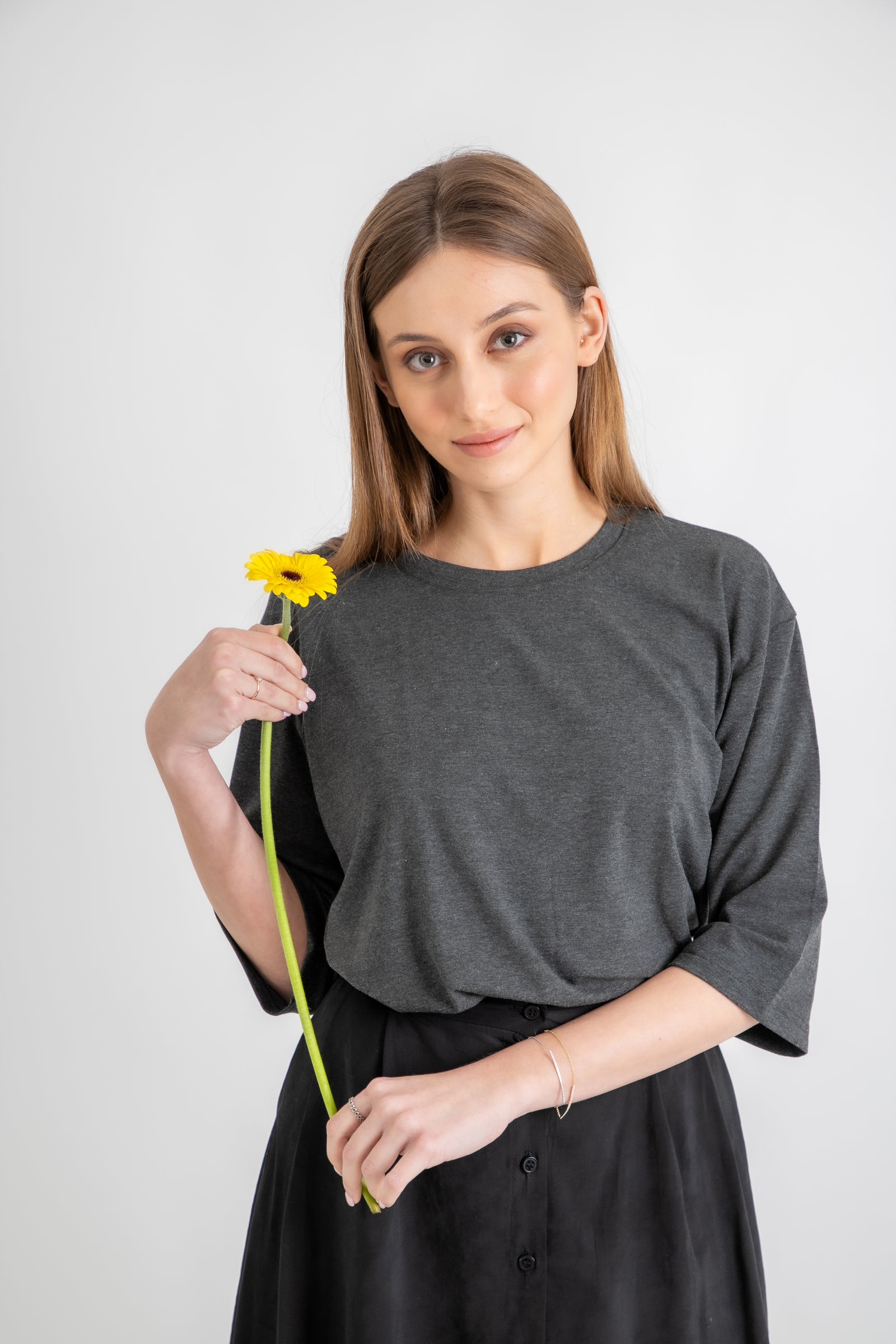 חולצת ביסייק אפור מרנגו בגזרה רחבה